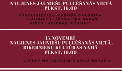 Aicinām Naujenes, Biķernieku pagasta jauniešus radoši, aktīvi, intelektuāli pavadīt novembra mēnesi kopā!