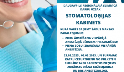 Daugavpils Reģionālajā slimnīcā darbu uzsāk stomatoloģijas kabinets