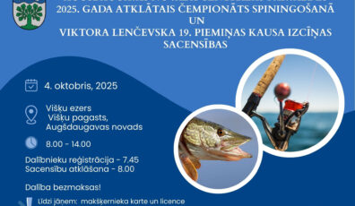 Tūrisms01.10.2025Atklātais čempionāts spiningošanā un Viktora Lenčevska 19. piemiņas kausa izcīņas sacensības Lasīt vairāk