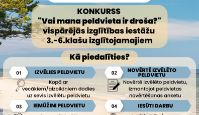 Sociālais darbs un veselība03.07.20233.-6.klašu skolēniem iespēja piedalīties konkursā “Vai mana peldvieta ir droša”! Lasīt vairāk