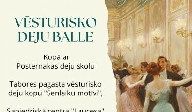 AKTUĀLI10.08.2023Vēsturisko deju meistarklašu cikls noslēgsies ar balli “Deja gadsimtu griežos” Lasīt vairāk