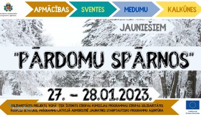 Jaunatnei02.02.2023Notika Eiropas Solidaritātes korpusa projekta “KOPĀ” izvērtēšanas aktivitāte “PĀRDOMU SPĀRNOS” Lasīt vairāk