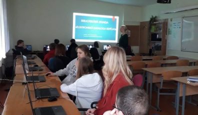 Naujenes pamatskolas 7. klases skolēni iepazīstas ar elektroniskā kataloga iespējām