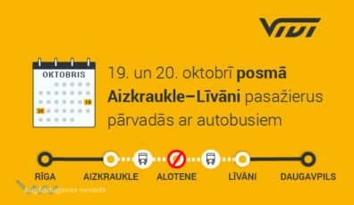 AKTUĀLI15.10.2025Remontdarbu dēļ vilciena pasažierus posmā Aizkraukle–Līvāni vedīs ar autobusu Lasīt vairāk