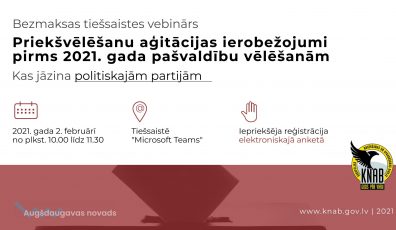 AKTUĀLI28.01.2021Galdu, telšu un pārvietojamo nojumju izmantošana priekšvēlēšanu aģitācijas laikā Lasīt vairāk