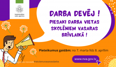 Pašvaldība07.03.2022NVA aicina darba devējus pieteikt darba vietas skolēniem vasaras brīvlaikā Lasīt vairāk