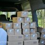 ”Šodien, ja nemaldos, mēs vedam 13 pakas. Paku saturs ir līdzīgs kā arī citos pagastos: sardeles, krējums, biezpiens, olas, zirņi, mazie ”lācīši” bērniem. Parasti ģimenes ar pakām ir apmierinātas un sūdzību līdz šim nav bijis, ka bērni kaut ko no piegādātā neēstu.Produkti ir veselīgi un šoreiz klāt vedam arī pienu,” skaidro Naujenes pagasta sociālā darbiniece Iveta Rudko.