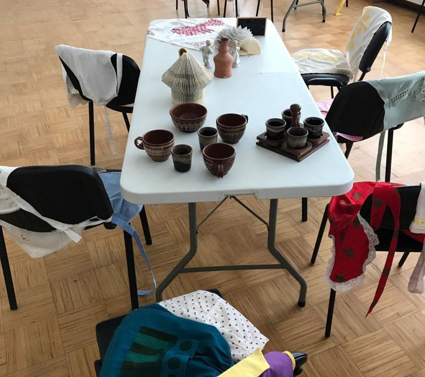 Par godu svētkiem Kalupē veidota priekšautu un seno lietu izstāde