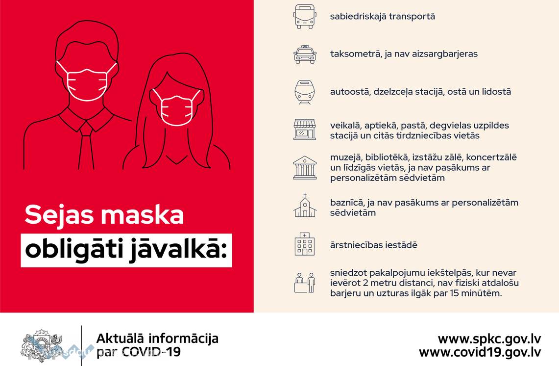 Šobrīd sejas maskas obligāti jāvalkā: