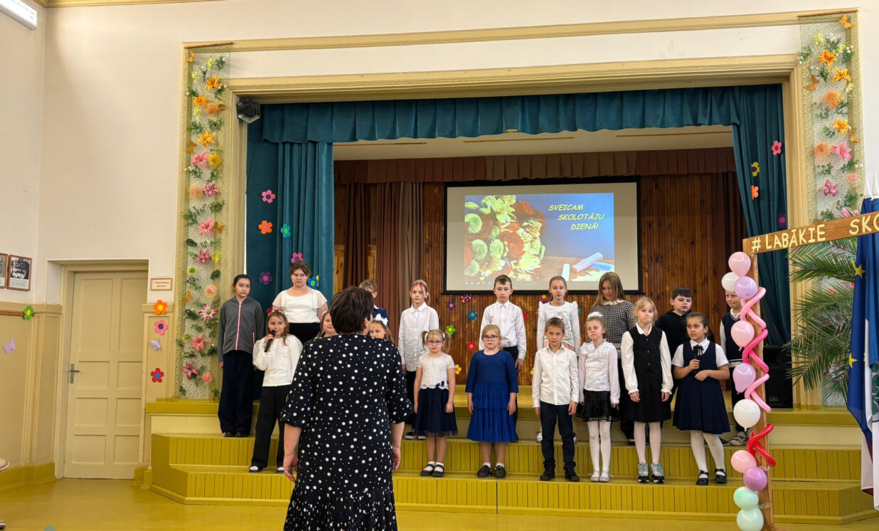 Skolēnu parlamenta dalībnieki organizēja skolotājiem brīnišķīgu koncertu, kuru novadīja pašpārvaldes prezidente Sofija Sidorova un viceprezidente Valērija Pudāne. 7. klases skolēni Vlada Marcinkeviča, Vitalina Tihomirova, Sofia Vasiļjeva Thygesen, Andžejs Proško parādīja leļļu teātra miniatūru, kuras morāle bija, ka mācīties nekad nav par vēlu. Pozitīvu Renāra Kaupera dziesmu „Alfabēts” nodziedāja 1.-4. klašu koris (vadītāja Oksana Klimanska). Pašpārvaldes dalībnieki izdomāja un parādīja priekšmetu skolotāju kostīmu modes skati. Katrs mācību priekšmets viņiem asociējās ar kādu krāsu, piemēram, ķīmija ir oranža, bioloģija ir zaļa, sports ir zilā krāsā, bet mūzika - dzeltenā krāsā. Plastisko deju uzdāvināja meiteņu 8.-10. klašu kolektīvs (Jūlija Larionova, Sandra Romanovska, Sofija Ivanova, Liāna Dedele, Milāna Bicāne). Arī 5. klases meitenes (Ksenija Ivanova, Valērija Tihomirova) dejoja jautru fanu deju, kas uzlaboja garastāvokli visiem. Koncerta beigās skolotājiem tika uzdāvinātas paštaisītas rozes un katra personīgais portrets, kas pārsteidza katru, jo portrets tika radīts ar mākslīgā intelekta palīdzību.