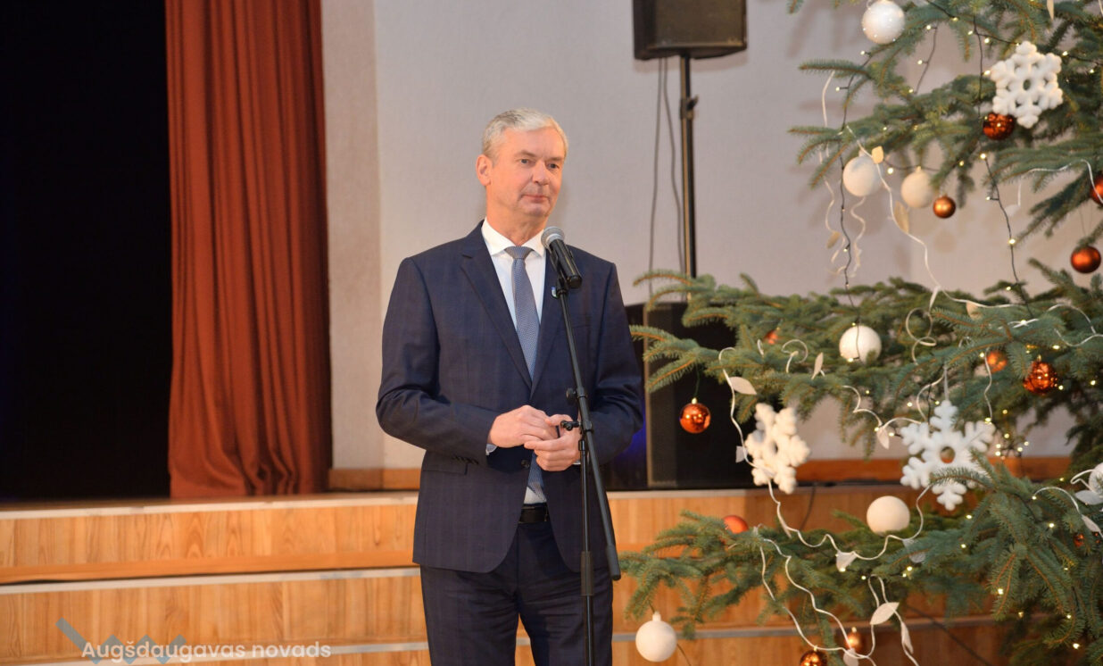 Svētku pasākumu dalībniekus sveica Augšdaugavas novada pašvaldības domes priekšsēdētājs Vitālijs Aizbalts: “Cienījamie vecāki, vecvecāki, audžu ģimenes, sociālie darbinieki! Jūs visi esat ļoti, ļoti svarīgi mūsu novadam. Ziemassvētku gaidīšana ir laiks, kad mēs nedaudz atgriežamies bērnībā, ticam brīnumiem un gaidām tos. Gaidām arī pārsteigumus, dāvanas. Mūsu šodienas pasākums ir maza pateicība, ka jūs esat pie mums, kopā ar mums. Liels, liels paldies par to, ka ikdienā esat ar mūsu mīļiem bērniem un palīdzat viņiem šajā ne tik dzīvē. Jūs darāt dzīvi skaistāku, priecīgāku un laimīgāku.”