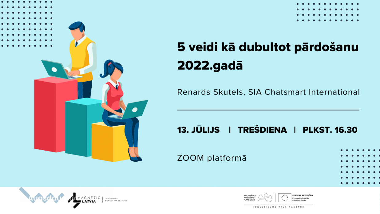 13.jūlijā no plkst. 16.30 līdz plkst. 17.10 LIAA Daugavpils biznesa inkubators rīko pasākumu “5 veidi kā dubultot pārdošanu 2022.gadā”, uz kuru aicina jaunos uzņēmējus un biznesa ideju autorus.