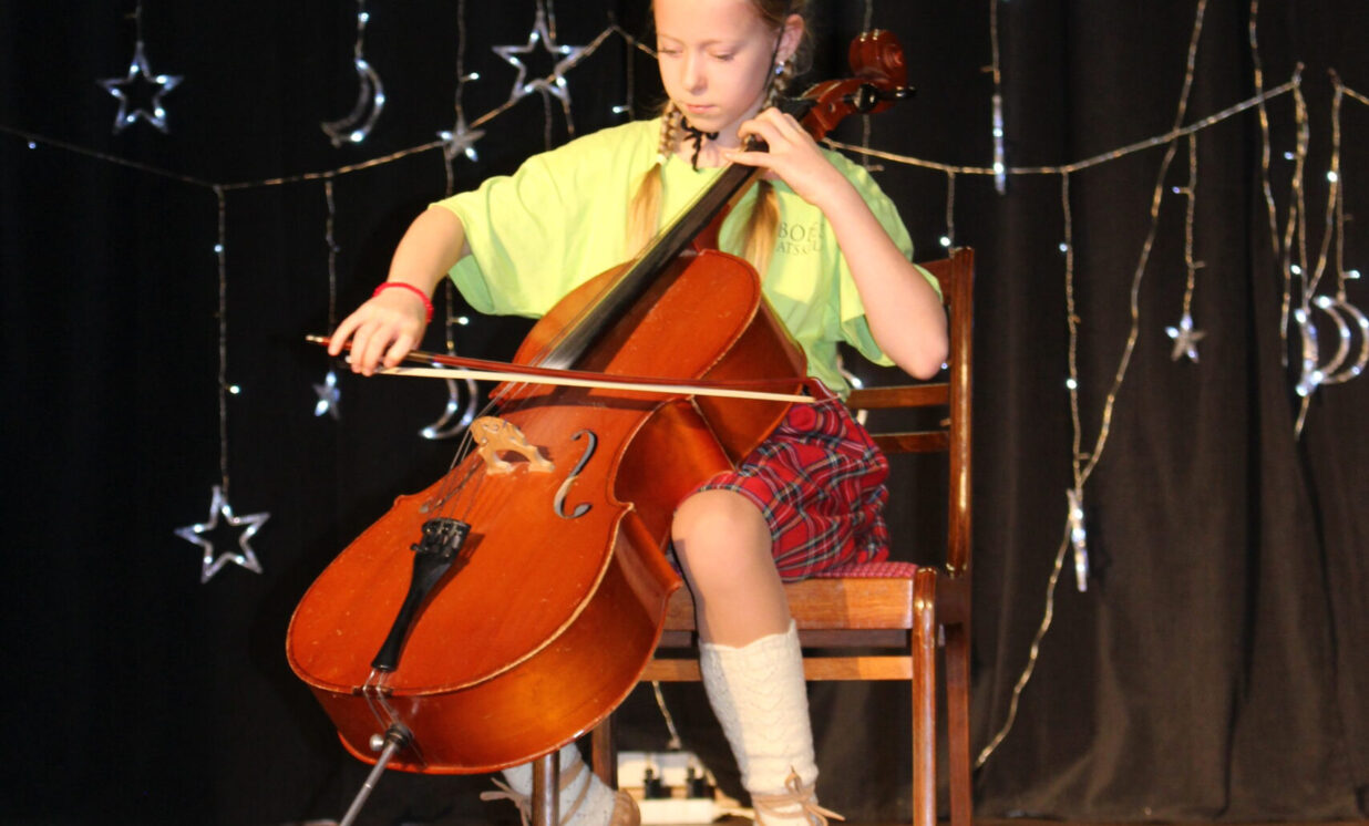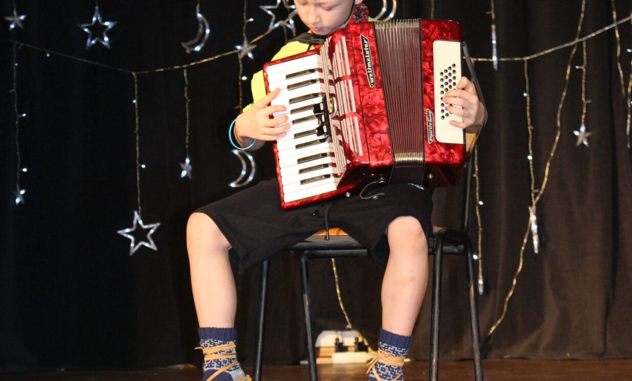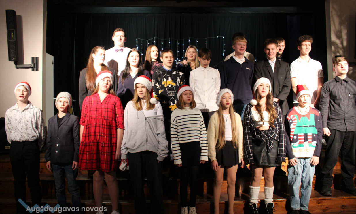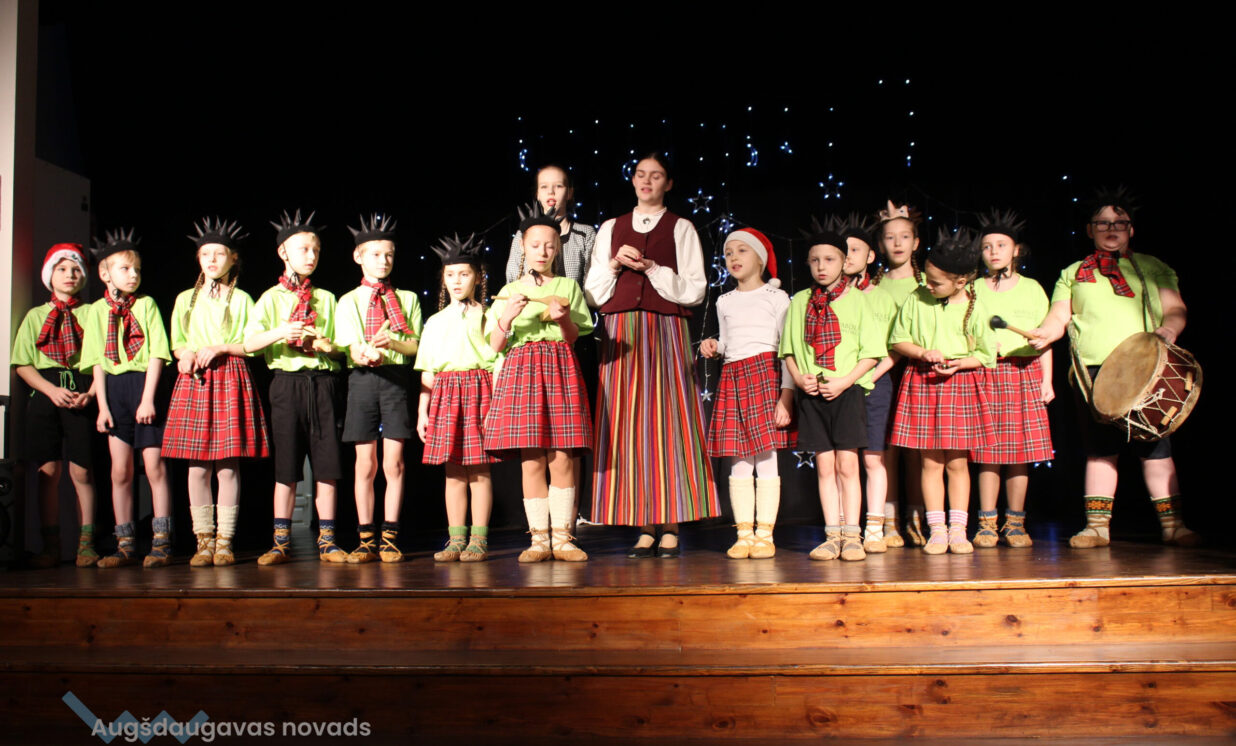 Ar patiesu sirsnību klātesošie sagaidīja mazos pirmskolniekus ar dziesmu “Pirmā sniegpārsliņa”. Drosmīgi visai zālei akordeonu spēlēja 2.klases skolnieks Adriāns un neparasto instrumentu čellu – Megija. Brašie brāļi Jorens un Atvars no kuplās Kārkliņu ģimenes lasīja mammas Dinas pašas sacerēto Ziemassvētku dzejoli. Burvīgas bija mūsu mīļās skolotājas – Linda, Nellija un Ināra Podniece, kas pasākumā ienesa tik dvēselisku noskaņu ar skaistajām laternām un izpildot dziesmu “Veltījums”. Burvīgi bija mazie deju kolektīva eži, kas izpildīja jauku ežu deju. “Sidrabiņa lietiņš lija” skolas folkloras kopas izpildījumā. Burvīgus salto un neizmērījamu lokanību mums rādīja 1.klases skolniece Marija Paukšta. Diemžēl Marijas mamma un mūsu mūzikas skolotāja Katrīna Paukšta, bet visais Latvijai šī gada X-Faktora zvaigzne, bija tā aizsmakusi, ka nevarēja parādīt savu priekšnesumu. Taču klātesošie viņu tāpat sumināja par uzdrīkstēšanos piedalīties televīzijas šovā. Taču vēl vieni televīzijas šova dalībnieki gan kuplināja mūsu pasākumu un bija tā kulminācija – Daugavpils Tumšzilais koris! Tajā piedalījās otra mūsu mūzikas skolotāja Annija.