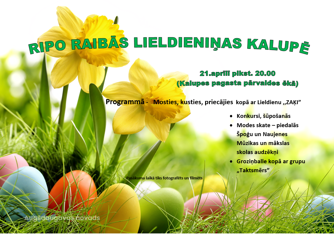 21. aprīlī plkst. 20.00 Kalupes pagasta pārvaldes telpās notiks pasākums “Ripo raibās Lieldieniņas”