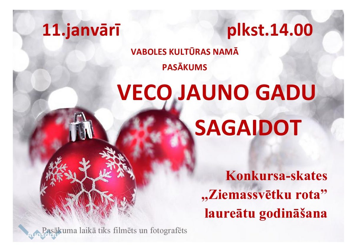 Pasākums “Veco Jauno gadu sagaidot”07.01.2020AKTUĀLI 11.janvārī, plkst. 14.00, Vaboles kultūras namā, norisināsies pasākums "Veco Jauno gadu sagaidot", kurā notiks "Ziemassvētku rotas" laureātu godināšana.Atgādinām, ka pasākuma laikā tiks filmēts un fotografēts.