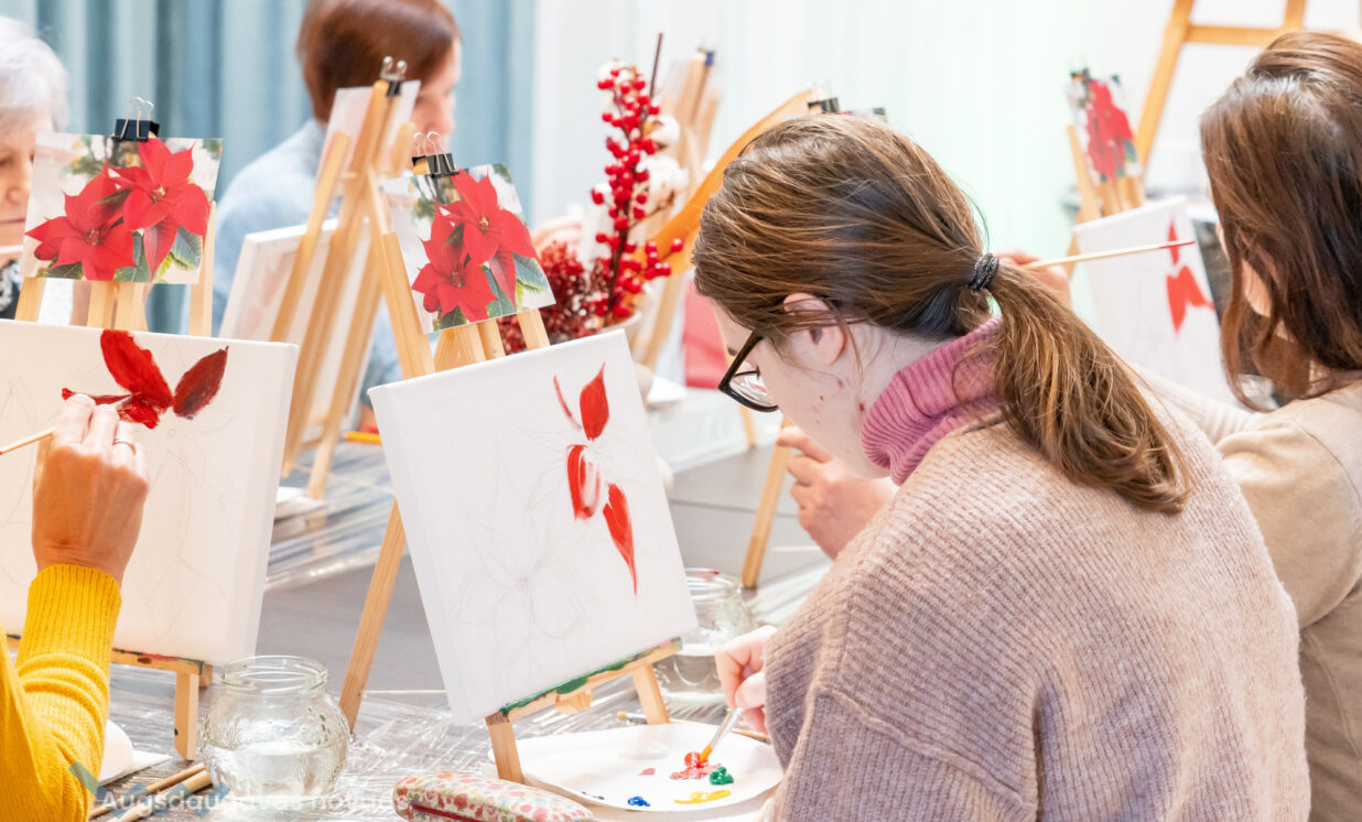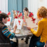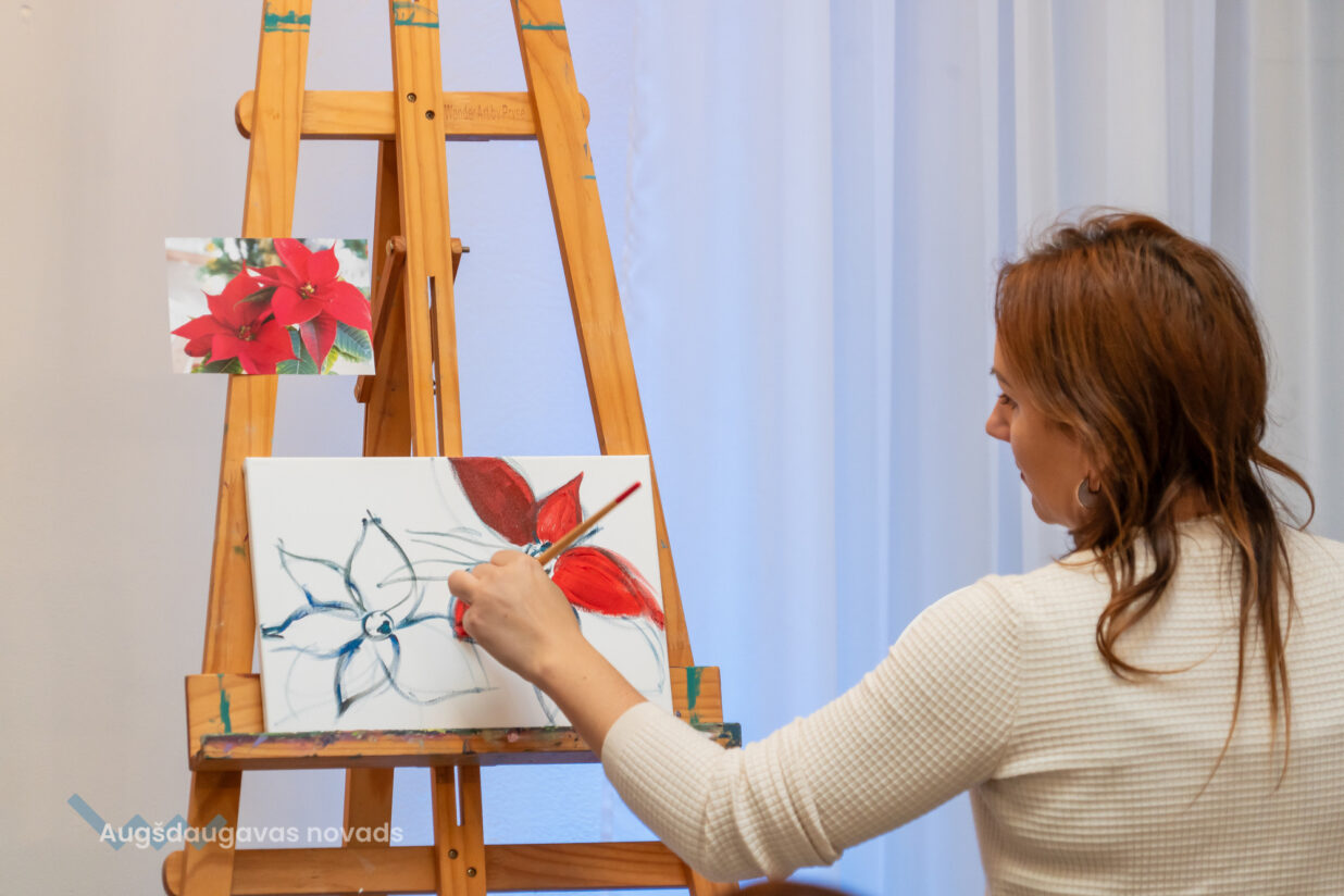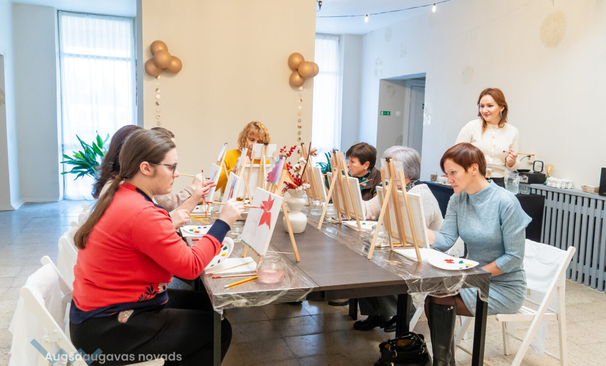Gleznošanas meistarklasē valdīja pilnīgs miers un radošums, “Pasākumu mājas” saimnieks Ēriks Aleksejevs meistarklases dalībniecēm bija sagatavojis īpašu gardu pārsteigumu kafijas pauzei. Māksliniece Baiba Āriņa aicina ikvienu būt drosmīgam un gleznot!