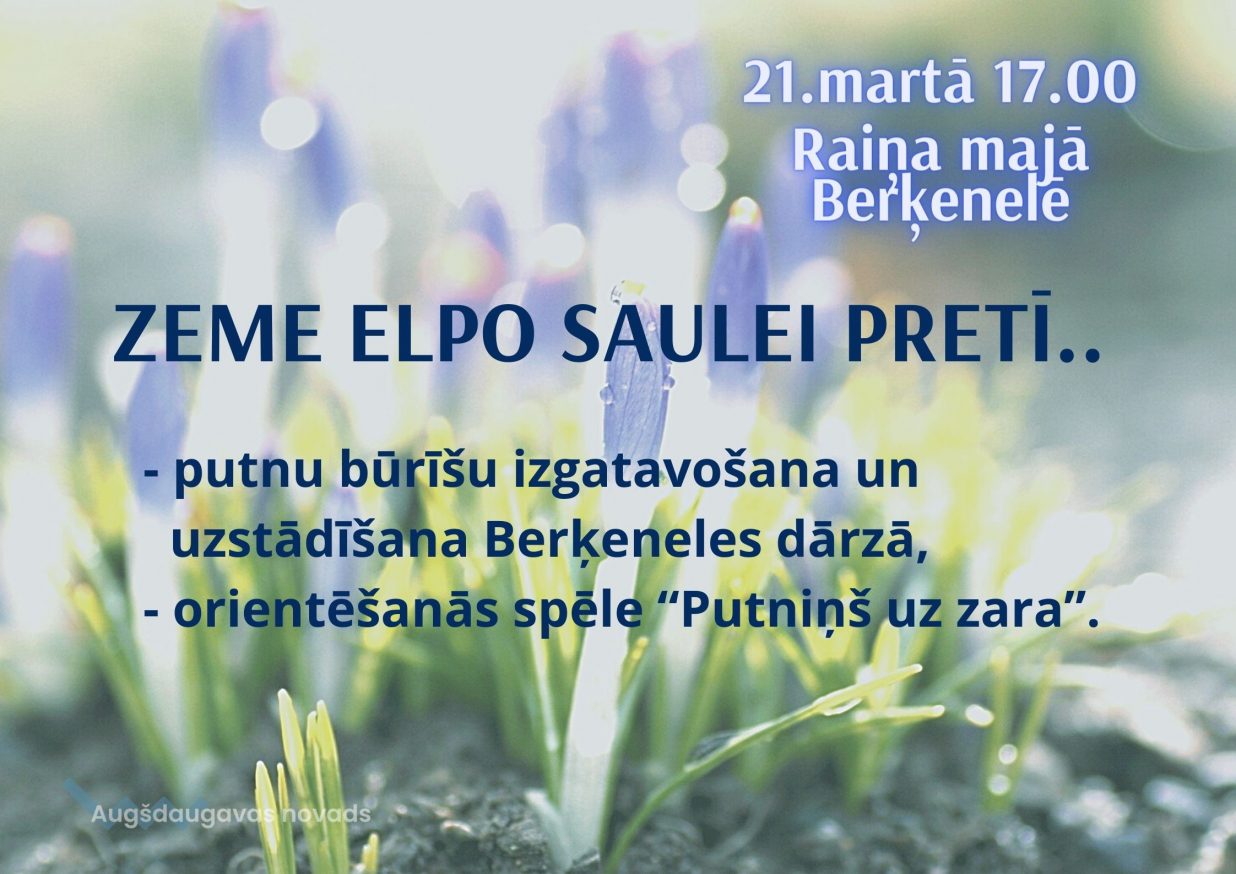 21. martā plkst. 17.00 aicinām uz Raiņa māju, lai darbotos putnu būru izgatavošanas darbnīcā. Pēc tam putnu būrīšus izvietosim Berķeneles dārzā, vienlaikus varēsiet piedalīties orientēšanās spēlē “Putniņš uz zara”.