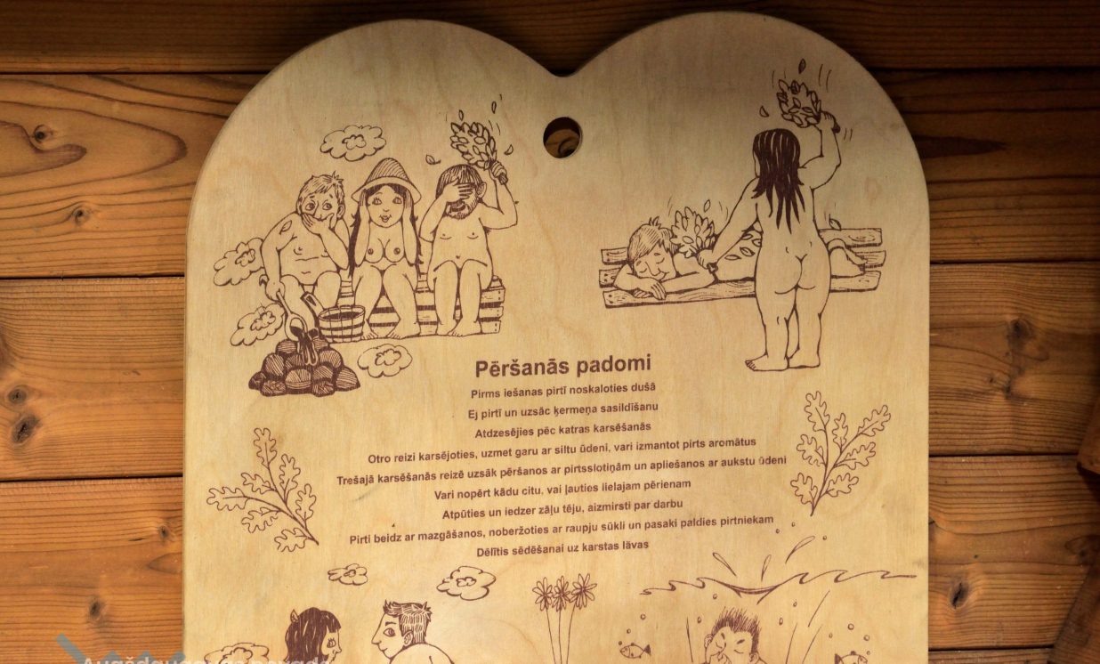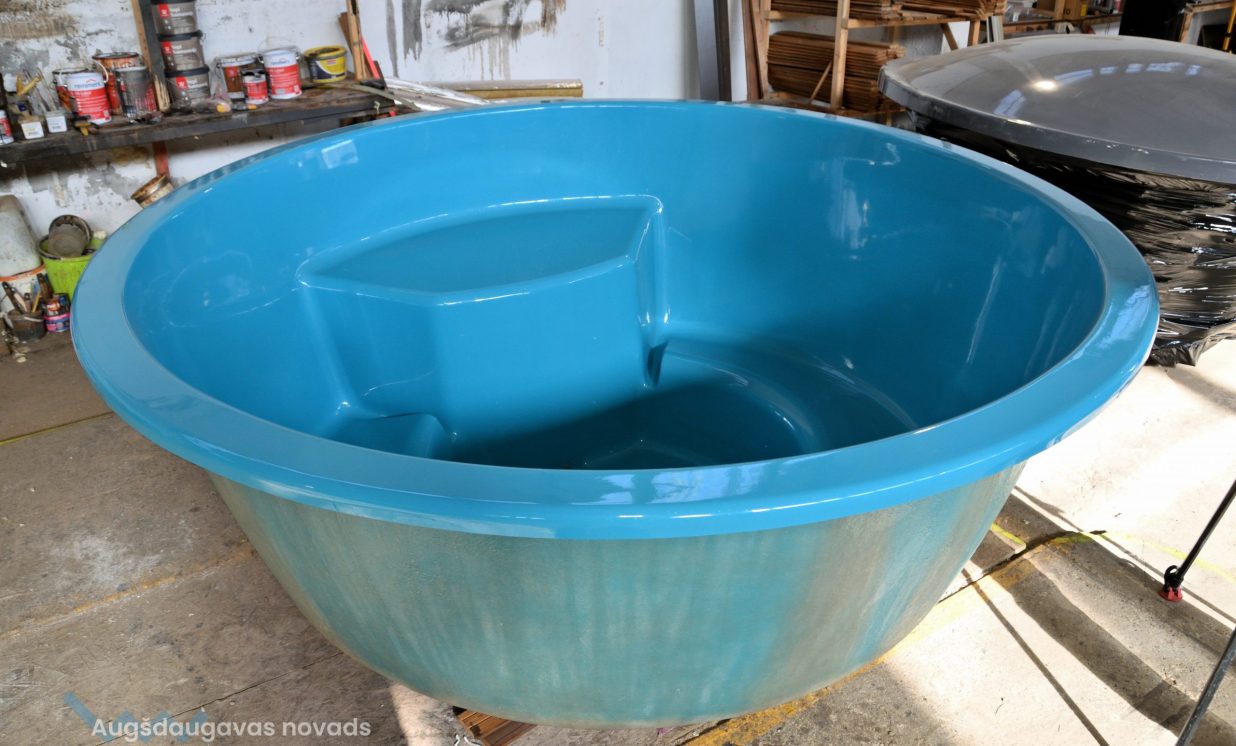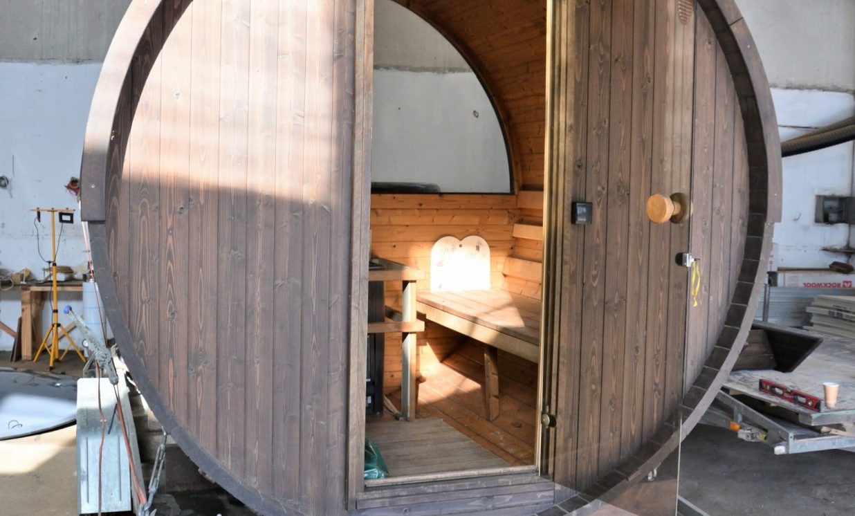 Mairis Kuriga, atrādot pirti: “Mēs viņu saucam par “kuģi divi vienā”. Tā ir pirts ar kubulu. Pirts telpa tiek kurināta ar malkas krāsni iekšā un boileri. Aiz panorāmas stikla jau atrodas kubuls. Iekāpjot kubulā, būs pieejamas masāžas sistēmas. Cits stikla šķiedras kubuls ir ar termokoka apdares dēlīšiem. Iekšpusē ir hidromasāža ar regulatoru, septiņas LED apgaismojuma funkcijas. Krāsns izgatavota no nerūsējošā tērauda, papildus paredzēts termovāks. Konkrēti šajā modelī nav uzstādīta, bet pasūtījumam ir pieejama arī 12 sprauslu gaisa masāžas sistēma.”