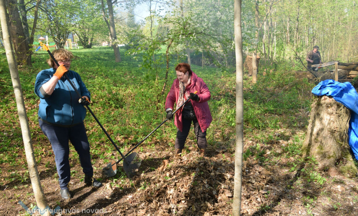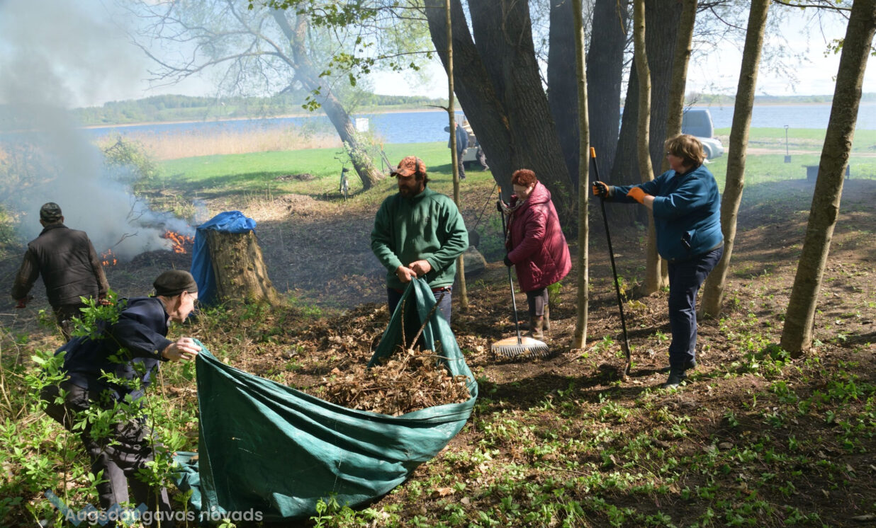 Višķos pie Luknas ezera talkoja arī pašvaldības aģentūras "Višķi"darbinieki.