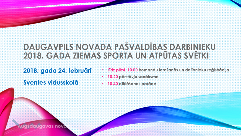24. februārī Sventes vidusskolā norisināsies pašvaldības darbinieku ziemas sporta un atpūtas svētki. Atklāšanas parāde plkst. 10.40.