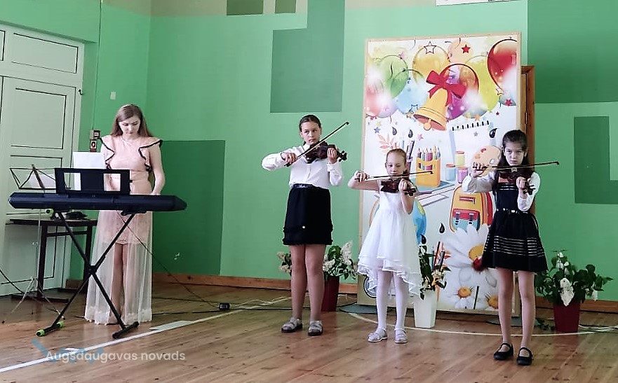 Par jauko noskaņojumu visa pasākuma gaitā rūpējās mūsu skolas talantīgie skolēni: skolas koris (skolotāja M.Kuzmina), jaunāko klašu skolēnu deju kolektīvs (skolotāja A. Mihailova) un pamatskolas skolēnu deju kolektīvs (skolotāja J.Posternaka), Naujenes mūzikas un mākslas skolas filiāles vijoles klases audzēknes (skolotāja S.Blaževiča).