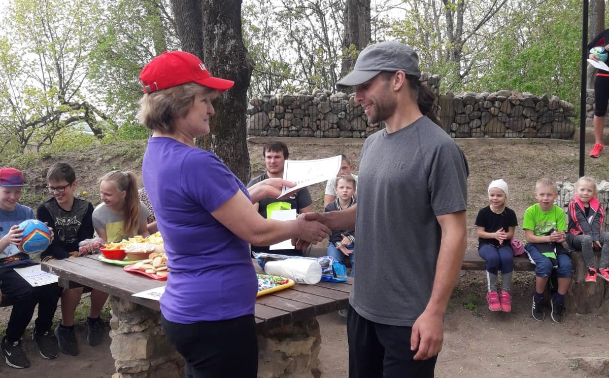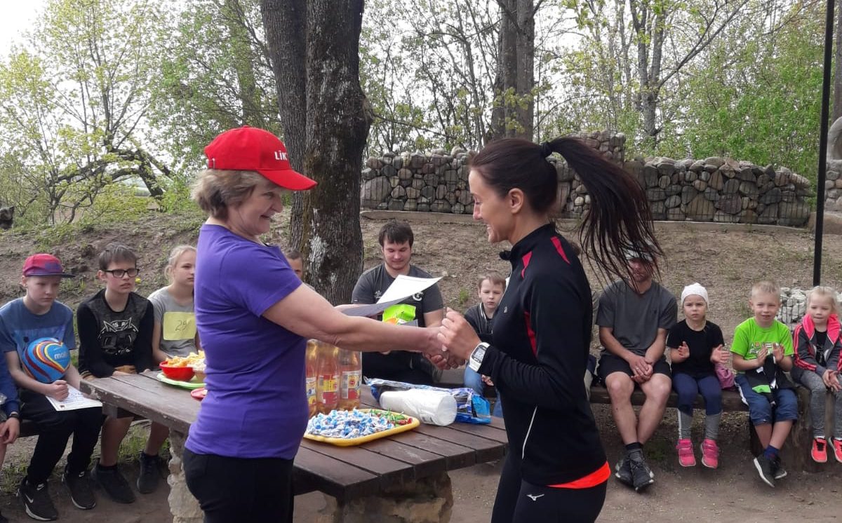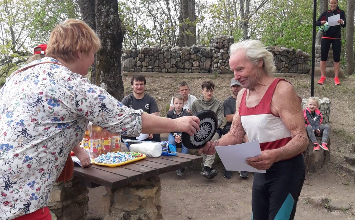 Īpašu balvu saņēma vecākie krosa dalībnieki – R. Saušs un V. Sergejeviča.