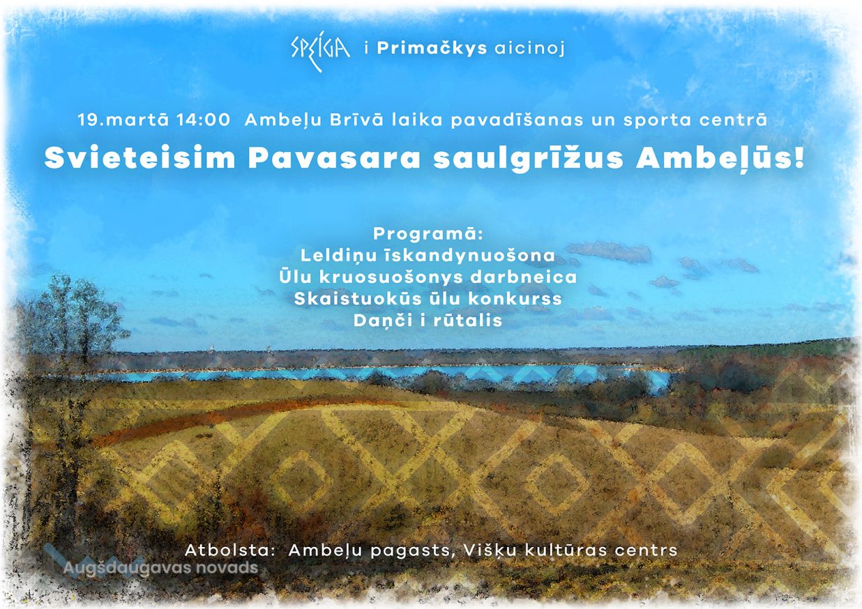 Gaideisim i mozus, i lelus Ambeļu breivuo laika pavadeišonys centrā nu 14:00 da 17:00 dasadaleit ūlu kruosuošonys i peirāgu cepšonys darbneicuos, pasaklauseit folklorys kūpu "Speiga" i "Primačkys" sasadzīduošonā, padancuot i pagaršuot izceptūs peirāgu.