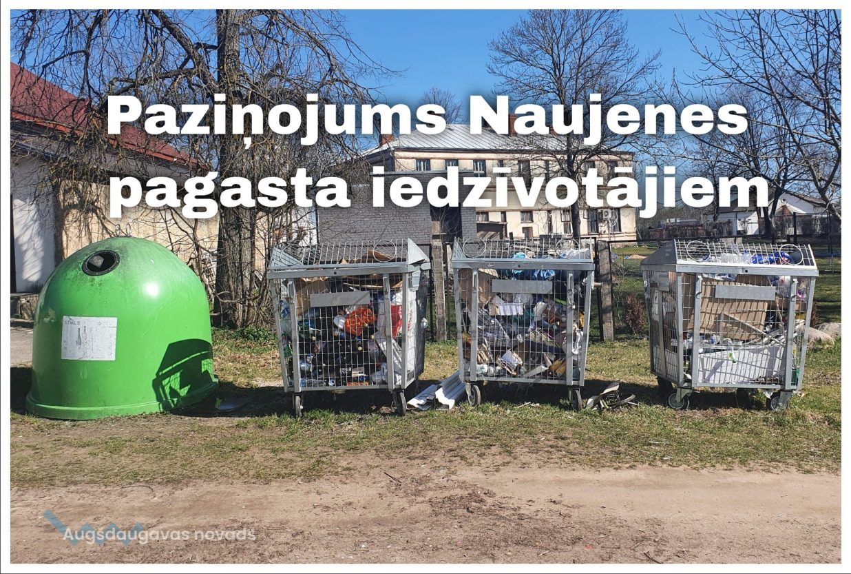Lūgums katram Naujenes pagasta iedzīvotājam iesaistīties atkritumu apsaimniekošanā, ievērojot valstī noteikto normatīvo regulējumu un Augšdaugavas novada pašvaldības saistošos noteikumus atkritumu apsaimniekošanā.