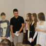 9.klases skolēni aicināja visus uz savu izlaiduma pasākumu, bet 1.klases skolēni sveica devītklasniekus ar mācību gada noslēgumu, nokārtotiem eksāmeniem un iesaistīja visus klātesošos aktīvā kustību dejā.