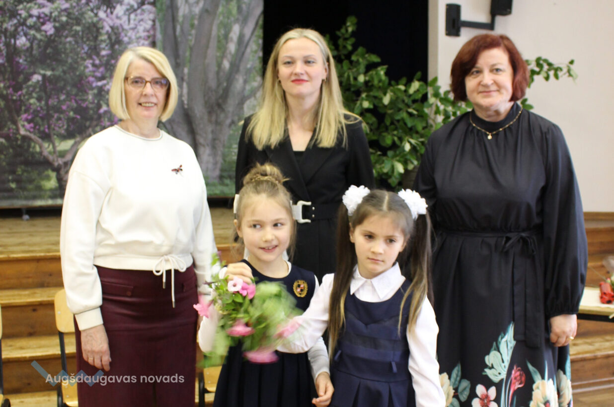 Svinīgā pasākuma noslēgumā notika lielā pateicības puķu ceļošana pie skolotājiem. 1.klases audzēkņi ieskandināja ziediem rotāto skolas zvanu uz pēdējo klases stundu šajā mācību gadā. Lai skaista vasara visiem!