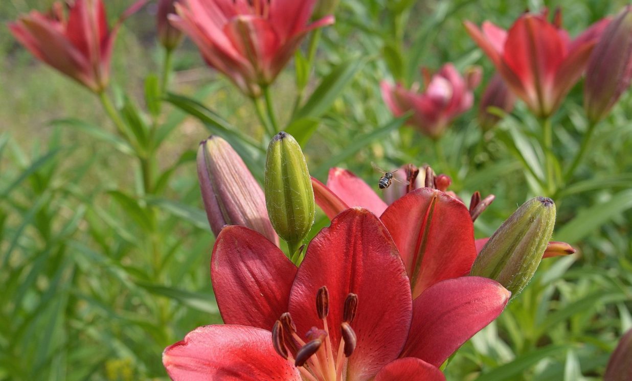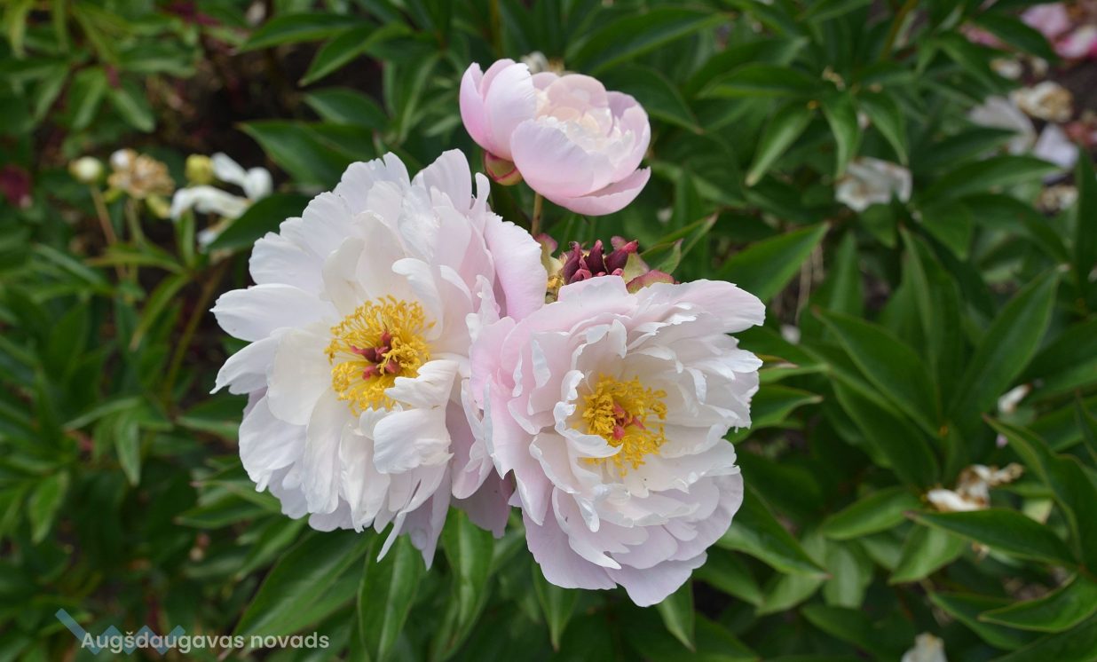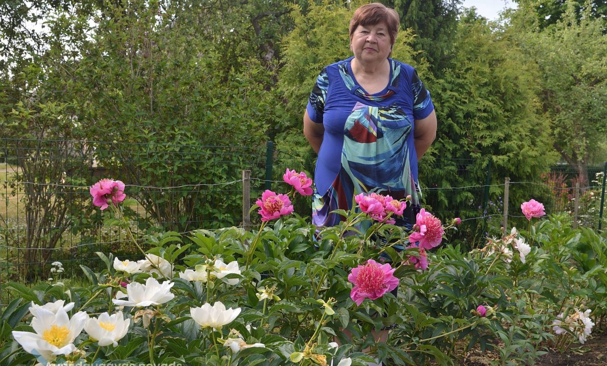 Šī pavasara salnas un vasaras karstais laiks gan nav nācis ziediem labumā, tomēr par spīti dabas kataklizmām peonijas ir saplaukušas, lai arī ziedēšanas laiks krietni sarucis tveices dēļ. Vandas Karpenko nelielajā piemājas dārzā vieta ir gan dažādiem dārzeņiem, gan milzīgam daudzumam ziedu – te aug ne vien peonijas, bet vairāk kā 100 šķirņu narcises un tulpes, daudzveidīgi īrisi un lilijas, gladiolas un dālijas.