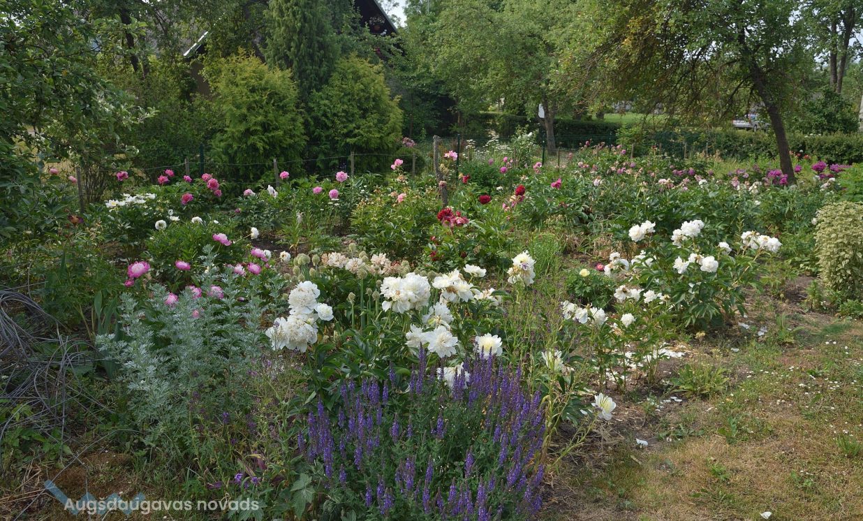 Katra šķirne ir pierakstīta, lai zinātu, kur kura aug. Saimniece ar gandarījumu ik dienu apstaigā dārzu un samīļo katru uzplaukušo ziedu, tie sniedzot lielu prieku. Lašu sārti, balti, rozā, dzelteni, tumšsarkani – ziedu daudzveidība pārsteidz ar krāsu un smaržu niansēm.