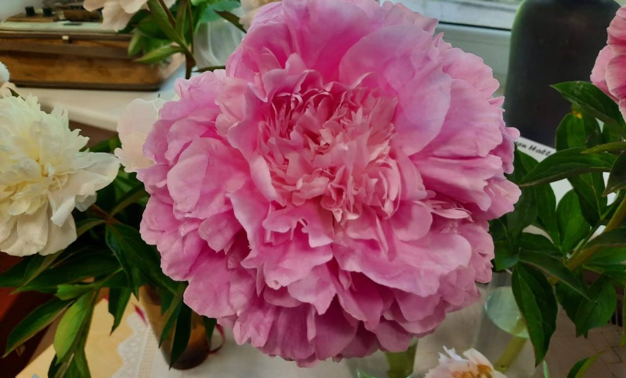 Jau trešo gadu Līksnas pagasta bibliotēkā notiek peoniju izstāde, kur var aplūkot un izsmaržot vismaz 100 šķirņu peonijas. Visdāsnākais peoniju klēpis nāk no līksnietes Vandas Karpenko dārza, kur pašlaik aug jau 120 šķirņu peonijas.