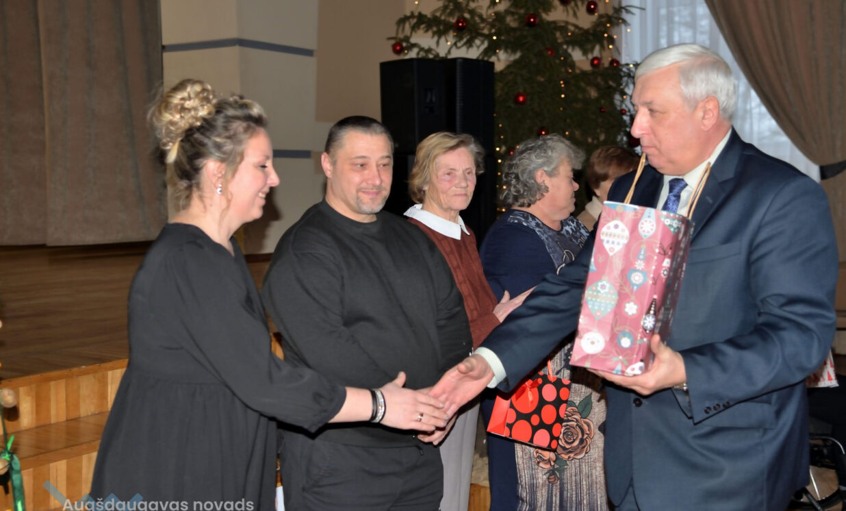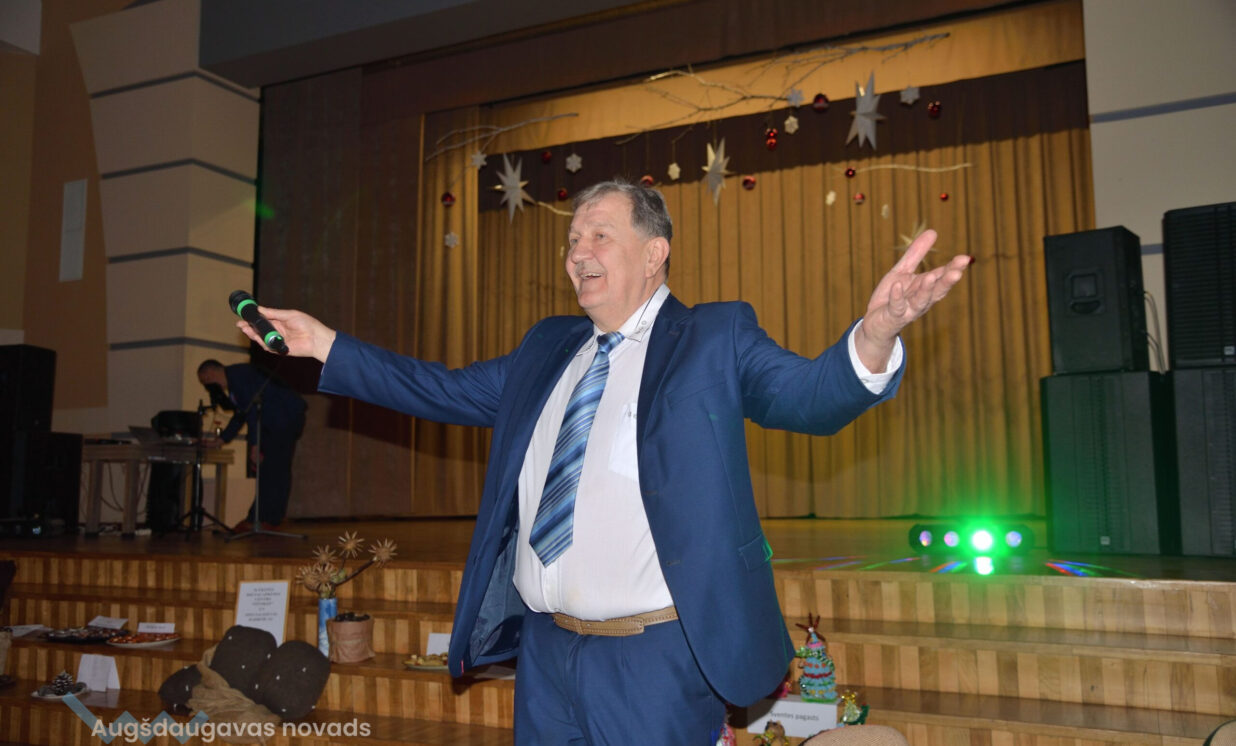 Augšdaugavas novada domes priekšsēdētājs Arvīds Kucins apsveica klātesošos: “Šajā gadā gribu jums novēlēt prieka pilnas dienas, lai katrs būtu piepildīts ar kaut ko jaunu un skaistu, lai viss labi būtu jūsu ģimenēs. Lai mēs 2025. gada beigās varētu pateikt, ka šis gads bija labs”.