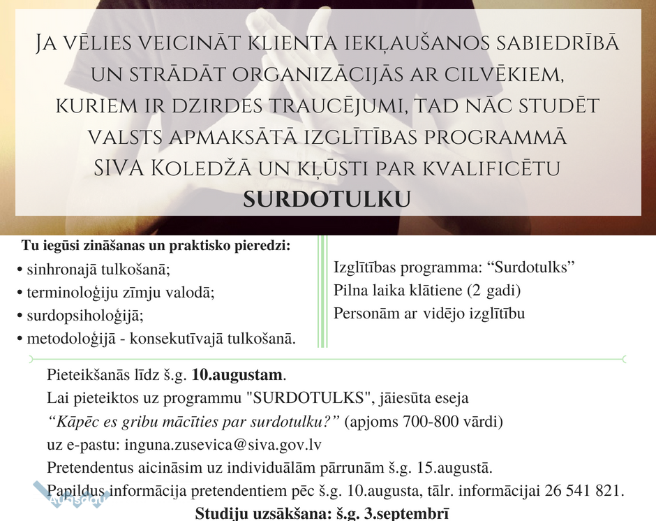 Personas ar invaliditāti var iegūt izglītību SIVA koledžā!