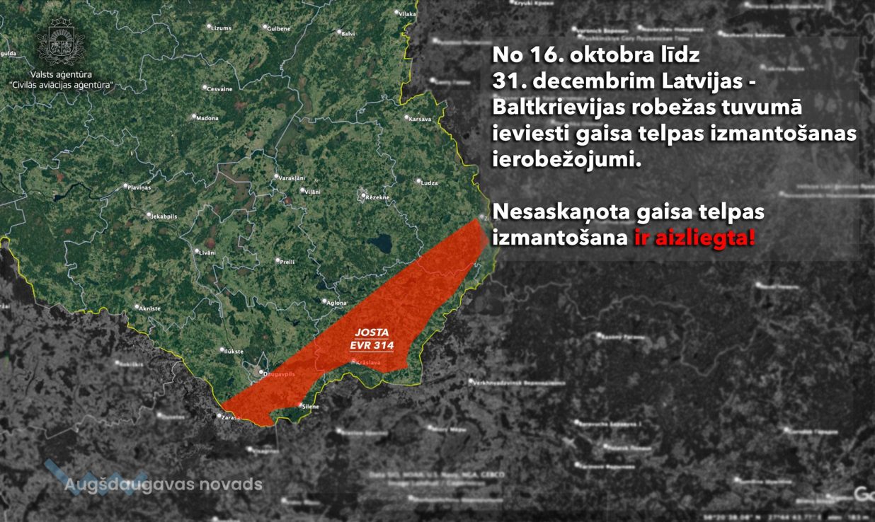 Gaisa telpas izmantošanas ierobežojumi stājas spēkā pusnaktī uz 16. oktobrī. Tie būs spēkā līdz 31. decembrim. Gaisa telpas izmantošanas ierobežojumi noteikti no Lauderiem Krievijas pierobežas zonā līdz Medumiem Lietuvas pierobežas zonā, iekļaujot sevī tādas apdzīvotas vietas kā Dagda, Krāslava un daļu Daugavpils. Ierobežojumi noteikti no zemes līdz 2895 metru augstumam.