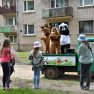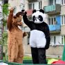 Briedis Nūdolfs, panda Sandra un pērtiķēns Patriks aicināja bērnus iesaistīties rotaļās un smelties prieku, lai varētu uzlādēties visai vasarai.