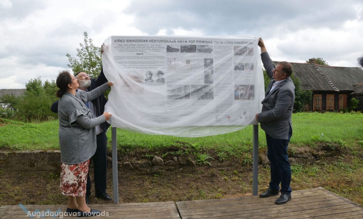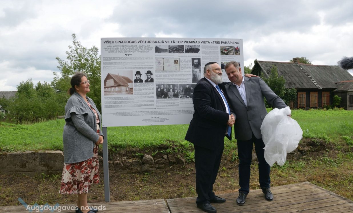 Jau nākamajā delegācijas vizītes dienā (19. augustā) pie Višķu sinagogas pamatiem notika informatīvās plāksnes atklāšanas pasākums. Tā ir veltīta Višķu ebreju sinagogai un kopienai, kas pirmskara Latvijas periodā veidoja lielāko daļu no ciemata iedzīvotājiem.