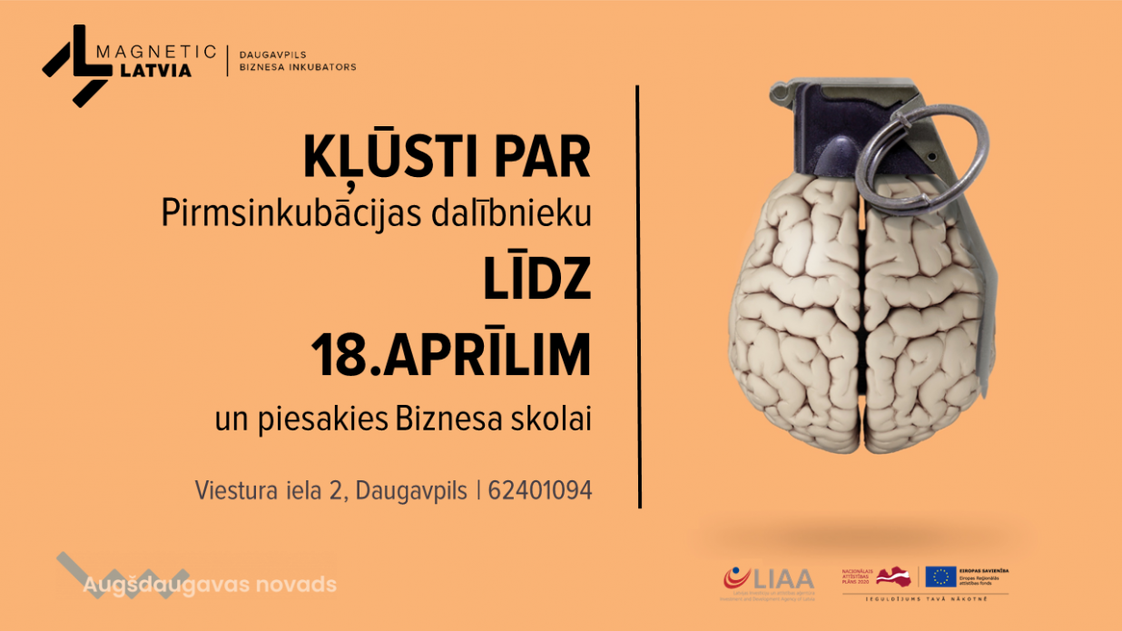 Ir biznesa ideja, bet nezini ar ko sākt? Piesakies Daugavpils biznesa inkubatora pirmsinkubācijas programmai un izmanto iespēju saņemt zināšanas "Biznesa skolā", kuru vadīs “TechHub Riga” pārstāvji - Ernests Štāls, Viesturs Sosārs un Anne Andersone.
