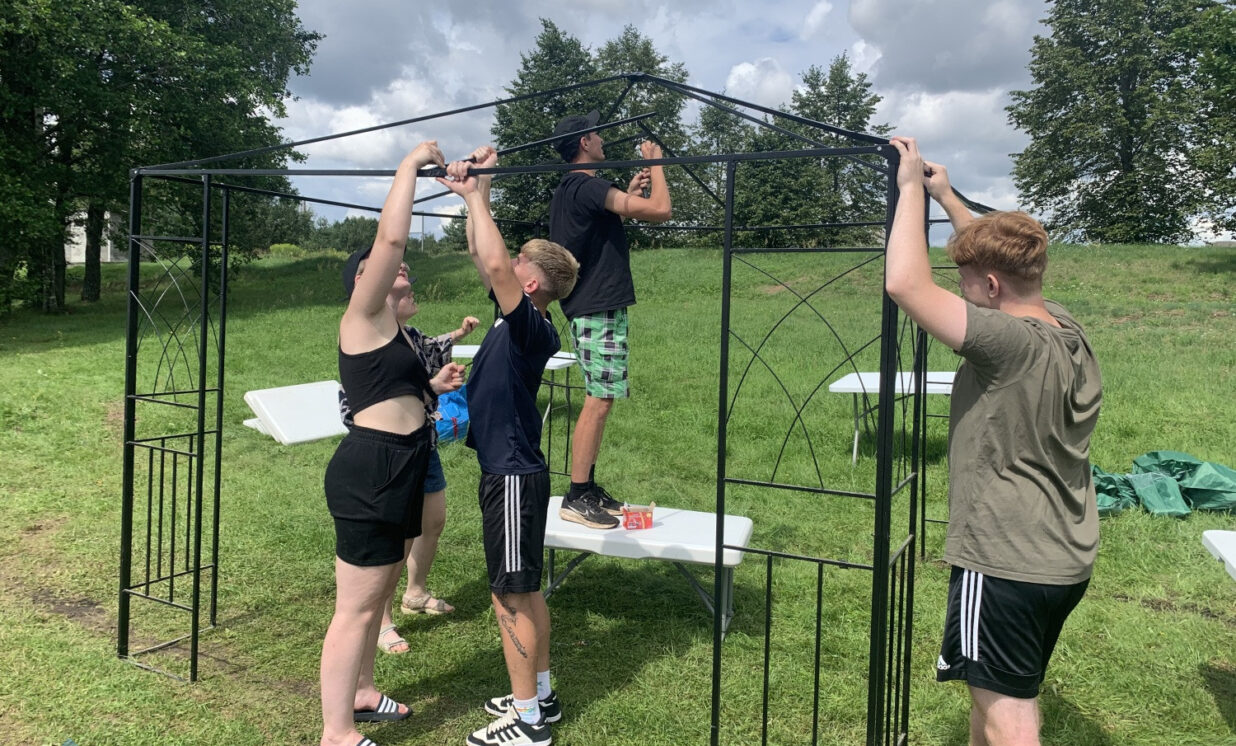 Jau no pirmajām stundām valdīja īsta komandas gars – jaunieši kopīgi cēla teltis, izgatavoja nojumes un no baļķiem darināja soliņus, lai vakarā visi kopā varētu sēdēt pie ugunskura un dziedāt dziesmas.