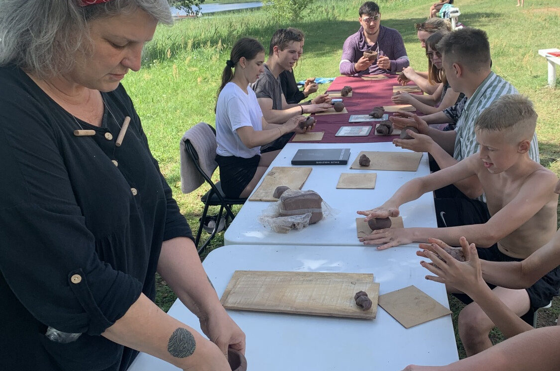 Otrajā dienā, pēc brokastīm, jauniešiem bija iespēja vizināties ar katamarānu, spēlēt volejbolu un piedalīties radošajā meistarklasē ar keramiķi Eviju Vasiļevsku no Latvijas Mākslas akadēmijas Latgales filiāles, biedrības “Pūdnīku skūla”. Evija ne tikai demonstrēja, kā veido māla traukus ar rokām bez virpas, bet arī pastāstīja par savu radošo ceļu, par Latgales keramikas tradīcijām un dāvināja jauniešiem grāmatu par slaveno keramiķi – savu vīru Evaldu Vasiļevski. Visiem dalībniekiem bija iespēja radīt savu unikālo darbu no māla, kas vēlāk tiks apdedzināts krāsnī un kļūs par lietojamu, paša radītu priekšmetu.