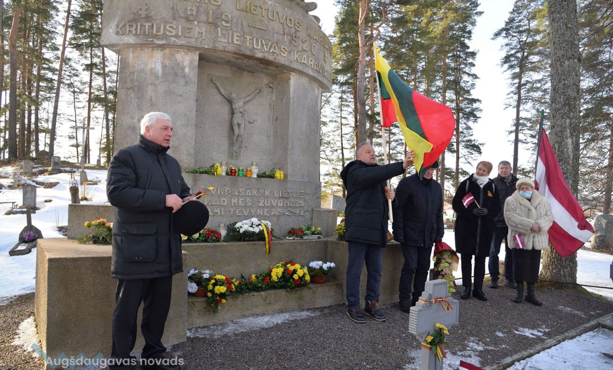 “Jāpateicas tiem, kas gājuši bojā, par mūsu kopīgu brīvu nākotni. Arī pašlaik mūsu karavīri stāv sardzē gan Lietuvā, gan Latvijā, par to, lai mēs varētu būt brīvi,” klātesošos sveica Augšdaugavas novada domes priekšsēdētājs A. Kucins.