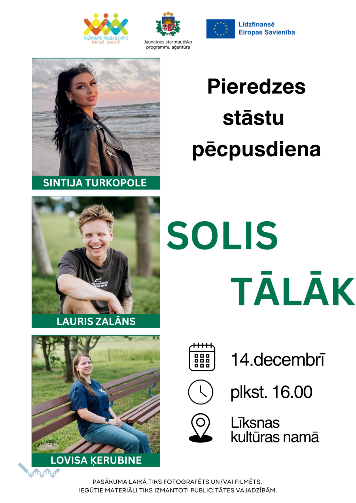 14.decembrī plkst. 16.00 Līksnas kultūras namā notiks pieredzes stāstu pēcpusdienu “Solis Tālāk”, kur varēsi pavadīt laiku kopā ar trim iedvesmojošām personībām: