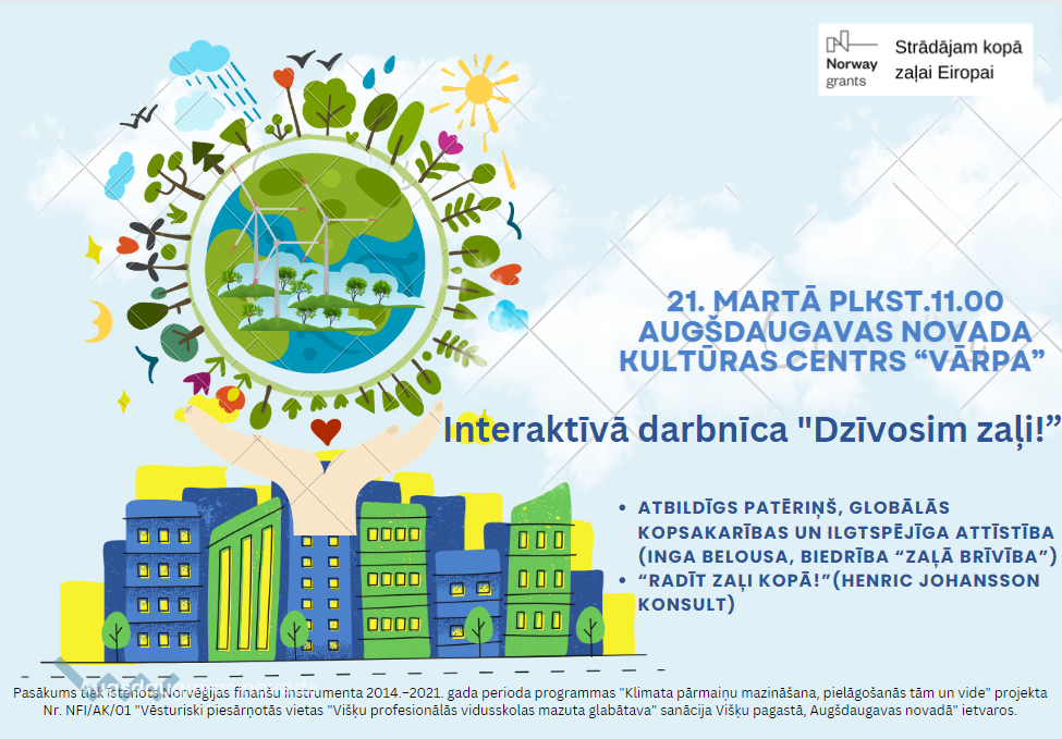 Dzīvot zaļi – nozīmē gan dzīvot labi, gan dzīvot ekoloģiski. Biedrība “Višķu attīstībai” un Augšdaugavas novada pašvaldība aicina ikvienu interesentu 21. martā piedalīties interaktīvā darbnīcā "Dzīvosim zaļi!”