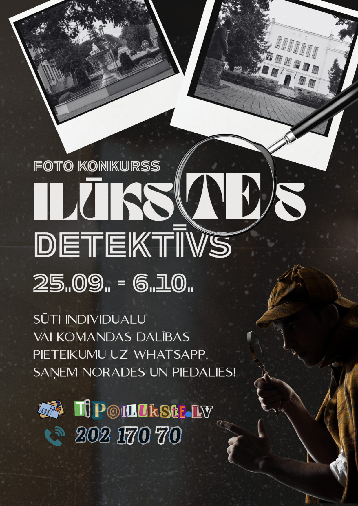 Atzīmējot Tūrisma dienu aicinām piedalīties aizraujošā foto orientēšanās spēlē "Ilūkstes detektīvs", ko organizē Ilūkstes tūrisma informācijas punkts. Šis konkurss ir lieliska iespēja iepazīt Ilūkstes pilsētu un parādīt savas fotogrāfa prasmes.
