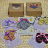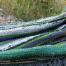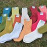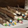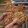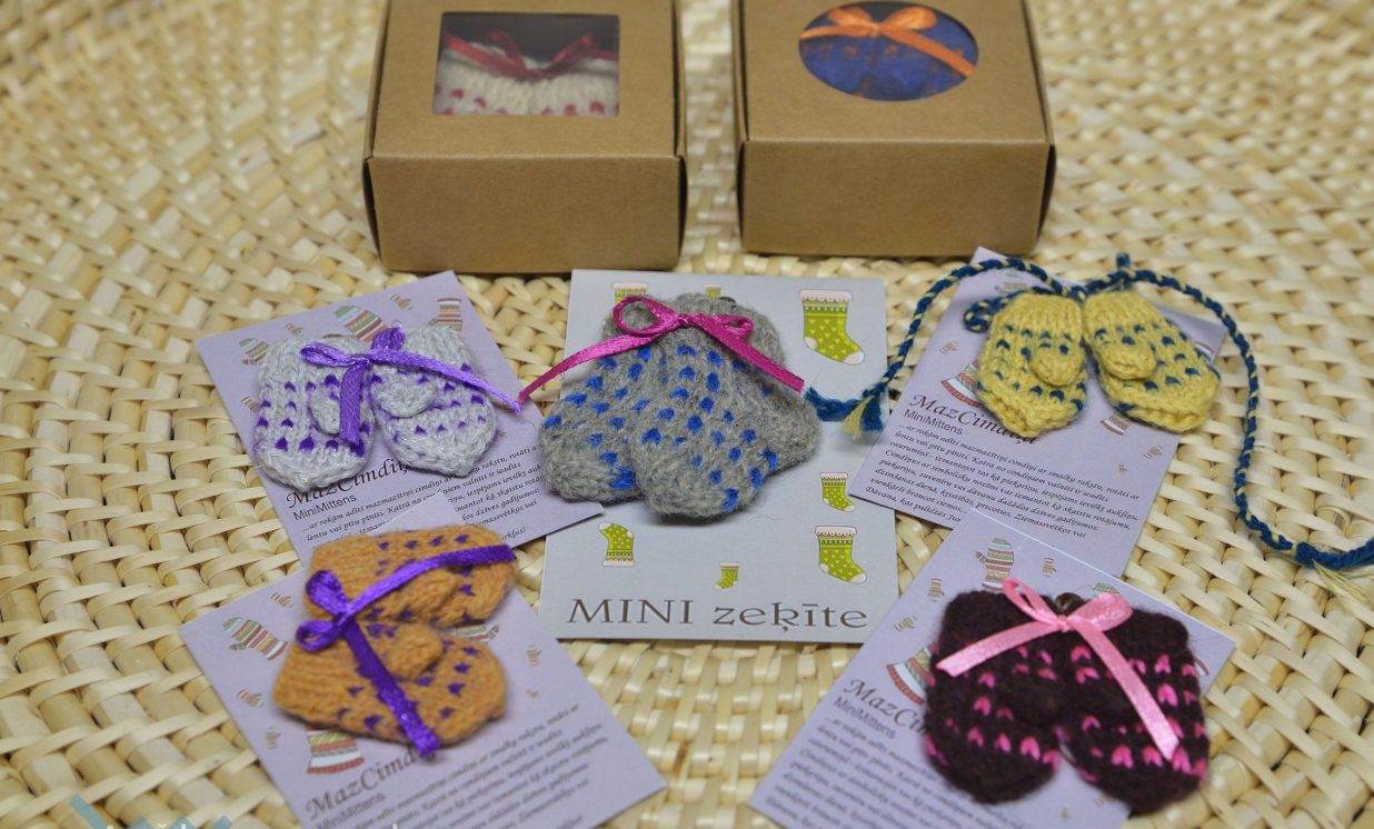 Ina ada arī mazcimdiņus un minizeķītes kā lielisku suvenīru, ko var pievienot dāvanai vai rotāt Ziemassvētku eglīti. “Redzi, cenšos dzīvot tā, lai pēc iespējas izmantotu visu līdz galam bez atlikumiem vai cenšos lietām dot otru iespēju,” smejas Ina. Jebkuru rokdarbu darot, paliek pāri kādi atlikumi, atgriezumi, ko var izmantot citur – no zeķēm paliek diegu gali, kas noder mazcimdiņiem, no klūgu mizām gatavo vīkšķus, ar ko pirtī skrubināties vai var savelt arī lielākus mizu spilvenus, ko palikt uz lāvas zem galvas. Savukārt klūgu skaidas noder plīts iekurināšanai. Aušanā tiek izmantoti dažādi audumu atgriezumi, no kuriem top krāšņi lupatu deķi.