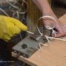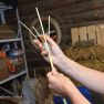 Tepat gar māju tek Veižalkas upīte, tur Ina arī mērcējot klūgas. Bet visa tālākā rosība notiek mājīgā darbnīcā, kas iekārtota bijušajā malkas šķūnī. Te smaržo pēc svaigām ēveļskaidām un klūgām. Laukā kūļos sasieti žāvējas meldri.