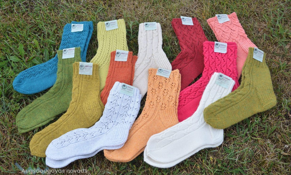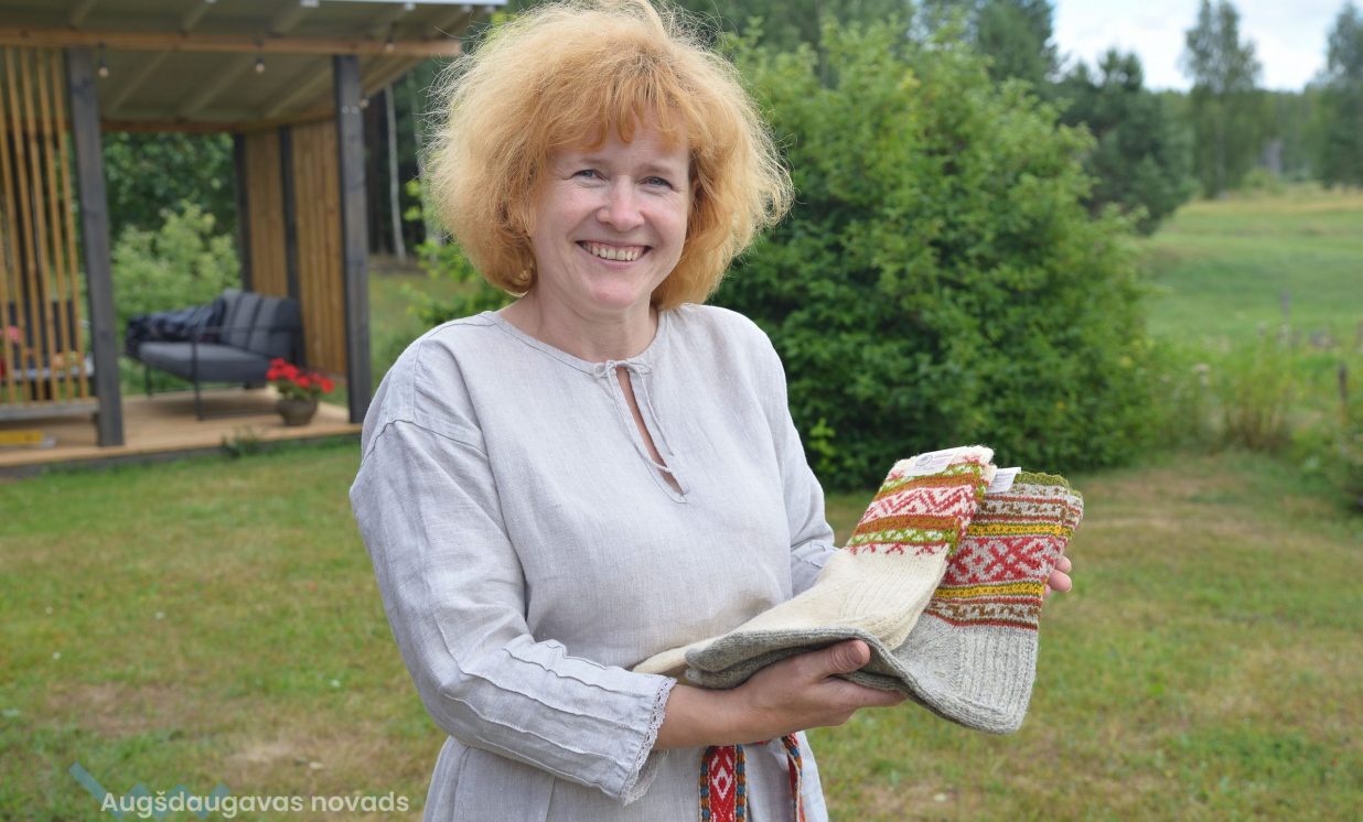 Savukārt no dzijas top krāšņas zeķes un cimdi, ko var atpazīt pēc zīmola “Sprogas”. Šogad liels izaicinājums bijis noadīt suitu zeķes, kurām rakstus un krāsu salikumus meklējusi bibliotēkā. Adījums sarežģīts, bet zeķes izdevušās skaistas un siltas.