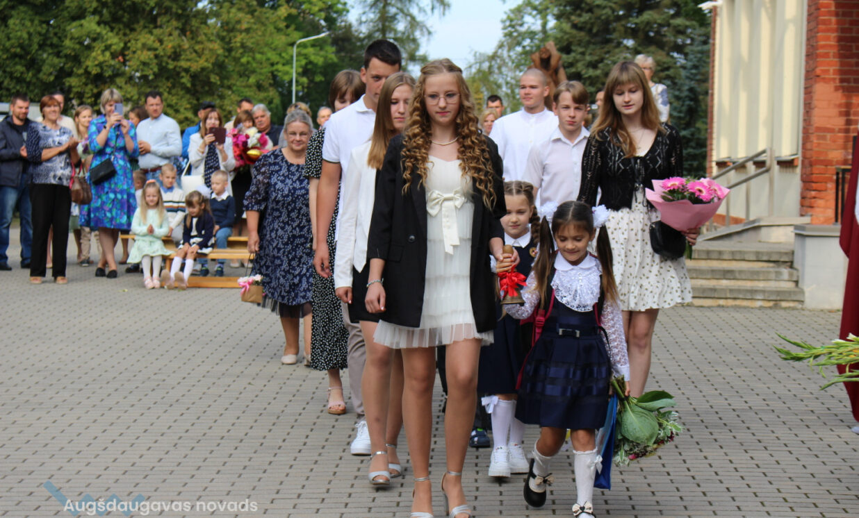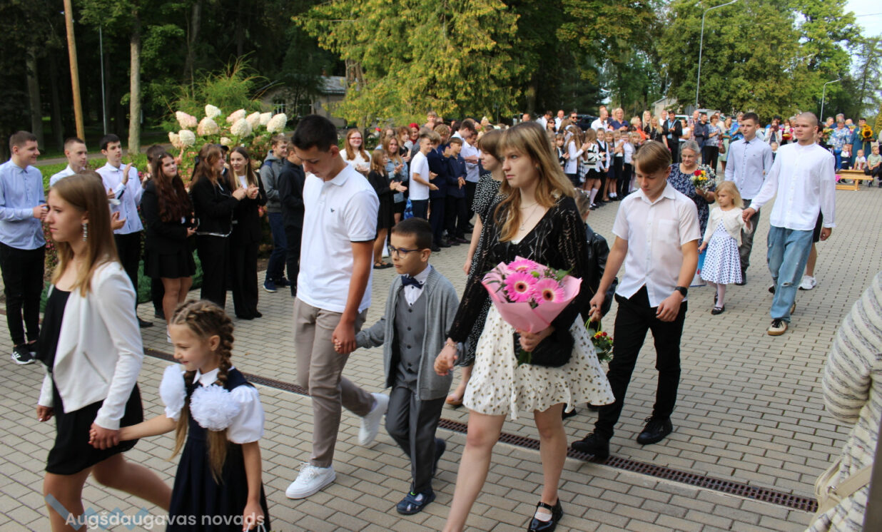 Jauno mācību gadu šogad sākām dienu vēlāk nekā ierasti – 2.septembrī. Skolas pagalmā smaržoja rudens. Skolēni skaisti saposušies, vasaras prieka pilni, ziediem rokās pacietīgi gaidīja mirkli, kad varēs iepazīties ar jaunajiem skolas biedriem un doties skolā.