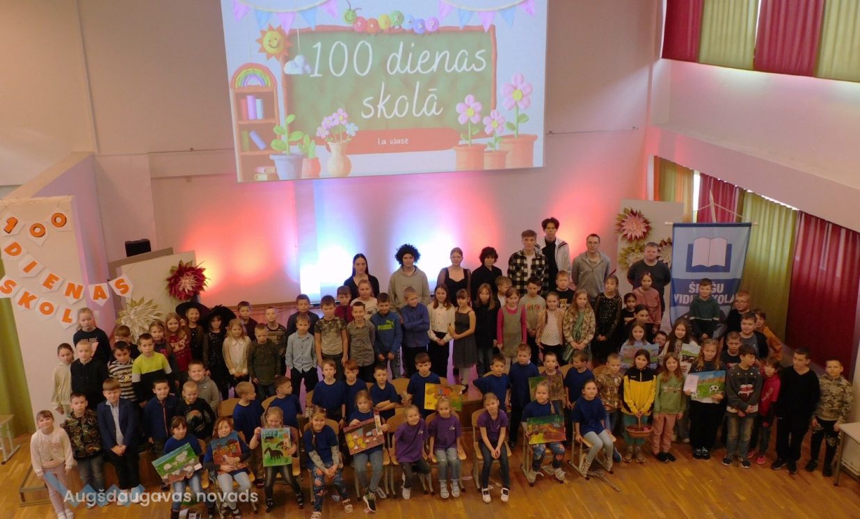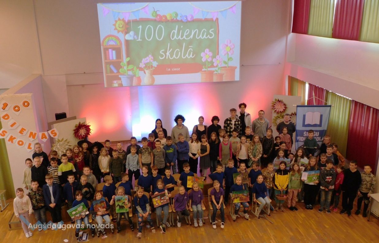 Špoģu vidusskolas 1.klases skolēni 2.februārī svinēja savas pirmās 100 mācību dienas skolā. Ciemos bija atnākuši gan sākumskolas skolēni ar audzinātājām, gan 12.klase ar audzinātāju, gan skolas administrācijas pārstāvji un protams vecāki. Īpašs viesis bija Karlsons, kurš gribēja zināt, ko bērni 100 dienās skolā ir apguvuši.